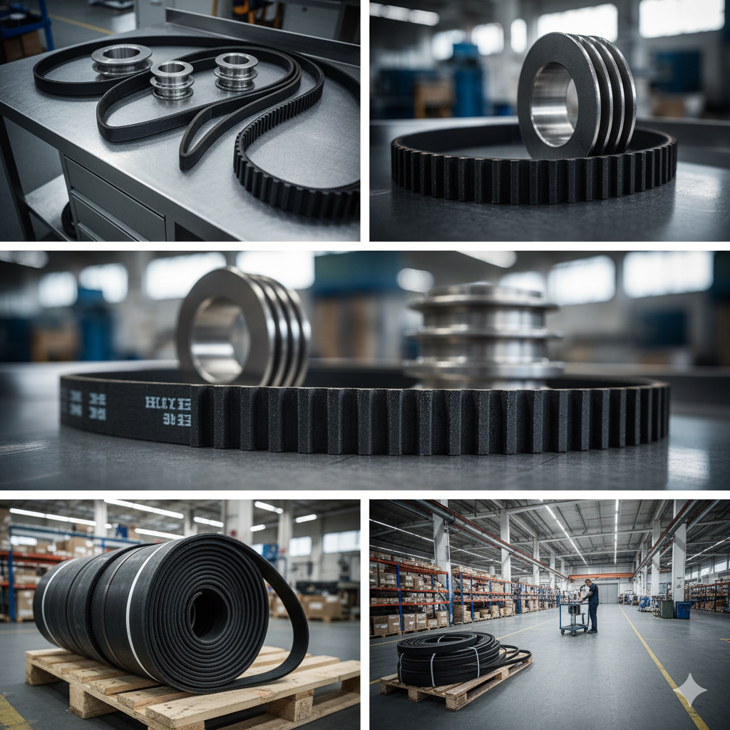 High-quality industrial belts designed for efficient power transmission across a wide range of machinery and applications.